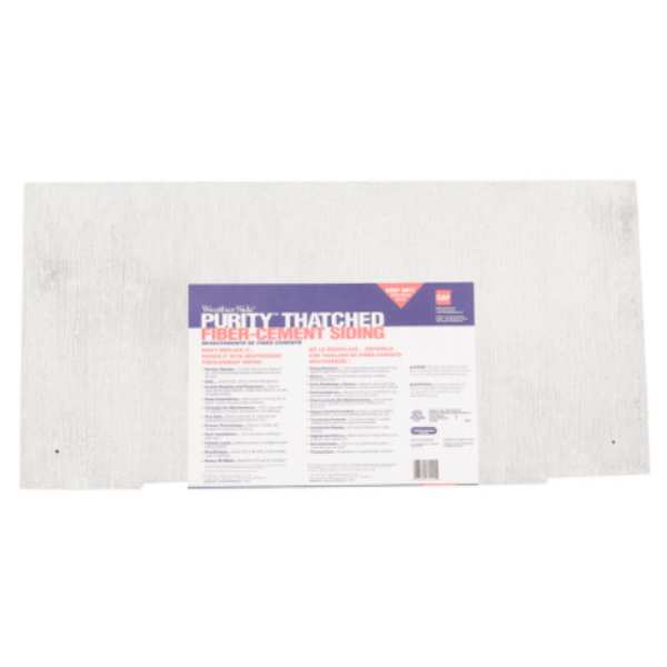 GAF WeatherSide Fiber-Cement Siding - Purity Thatched Shingles are the ultimate solution for replacing old asbestos siding shingles. This innovative product is designed to match many of the old siding shingles installed over the past 60 years, making it an ideal choice for homeowners looking to maintain the classic look of their homes. Each bundle contains 19 shingles, covering approximately 33 square feet, and weighs 62 lbs. With an exposure of 11" and a thickness of 11/64", these shingles include a textured surface with thatched bottom edge and are pre-primed and ready to be painted to match your existing siding or trim.