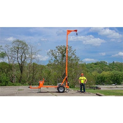 The X1000 XSERIES Mobile Grabber is a mobile fall arrest system that provides overhead anchor points anywhere, any time. The X1000 model is our most affordable model, tested to meet OSHA fall protection codes, offers two overhead anchor points up to 22 feet in height, and supports a maximum anchor capacity of 310 pounds. The unit is road-towable and can be towed by nearly any vehicle on the market, and also features built-in fork pockets for easy transport indoors.